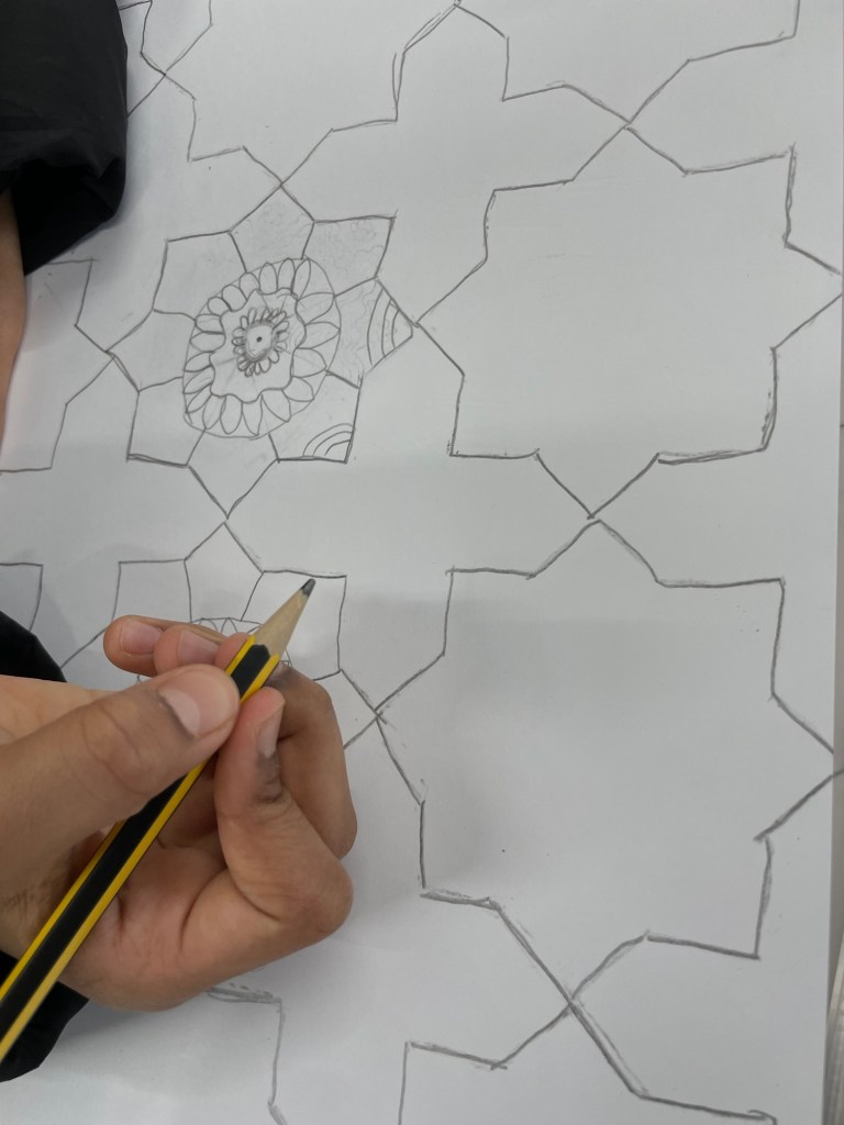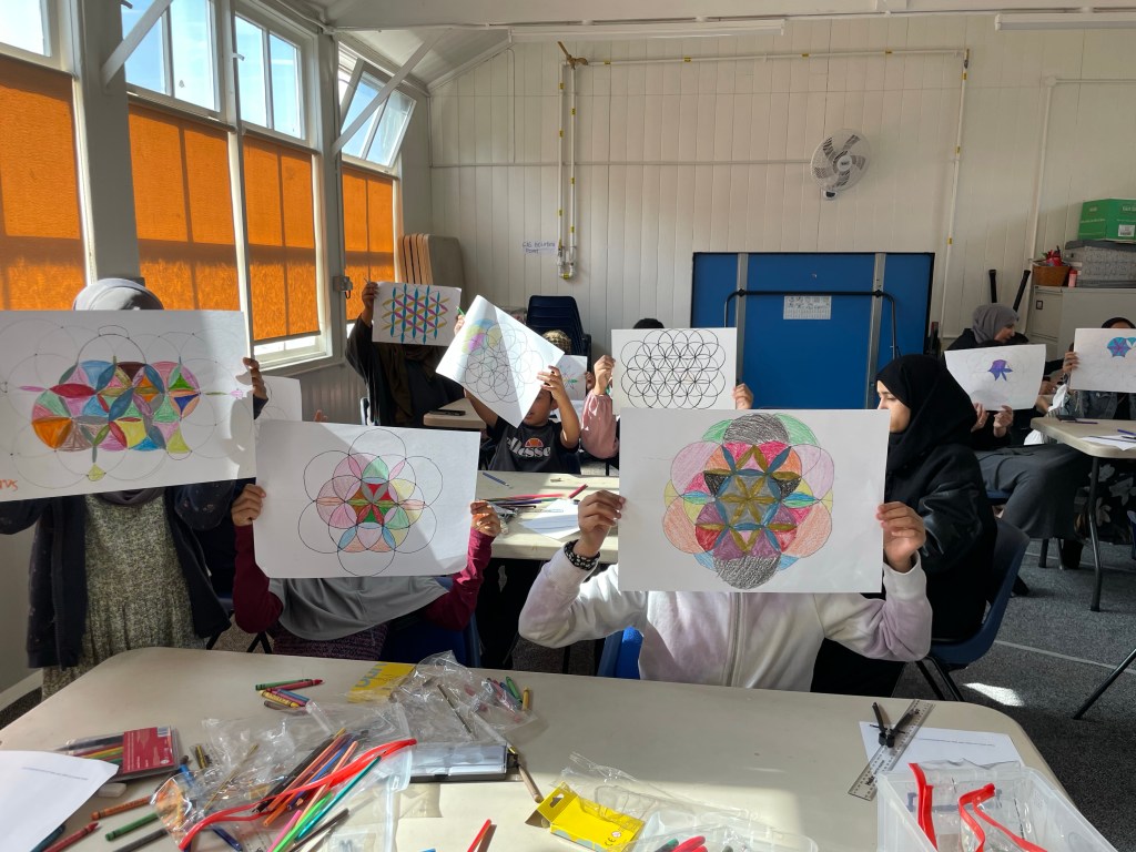 ‘The Flower of Life’ pattern was an awesome way to begin our project. It is recognised in many cultures throughout history including Christianity, Muslim, Hindu and many more. Some believe it to represent the cycle of creation.